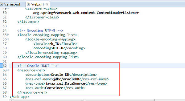 Step 3) 再到Eclipse Project裡的WEB-INF/web.xml 加入